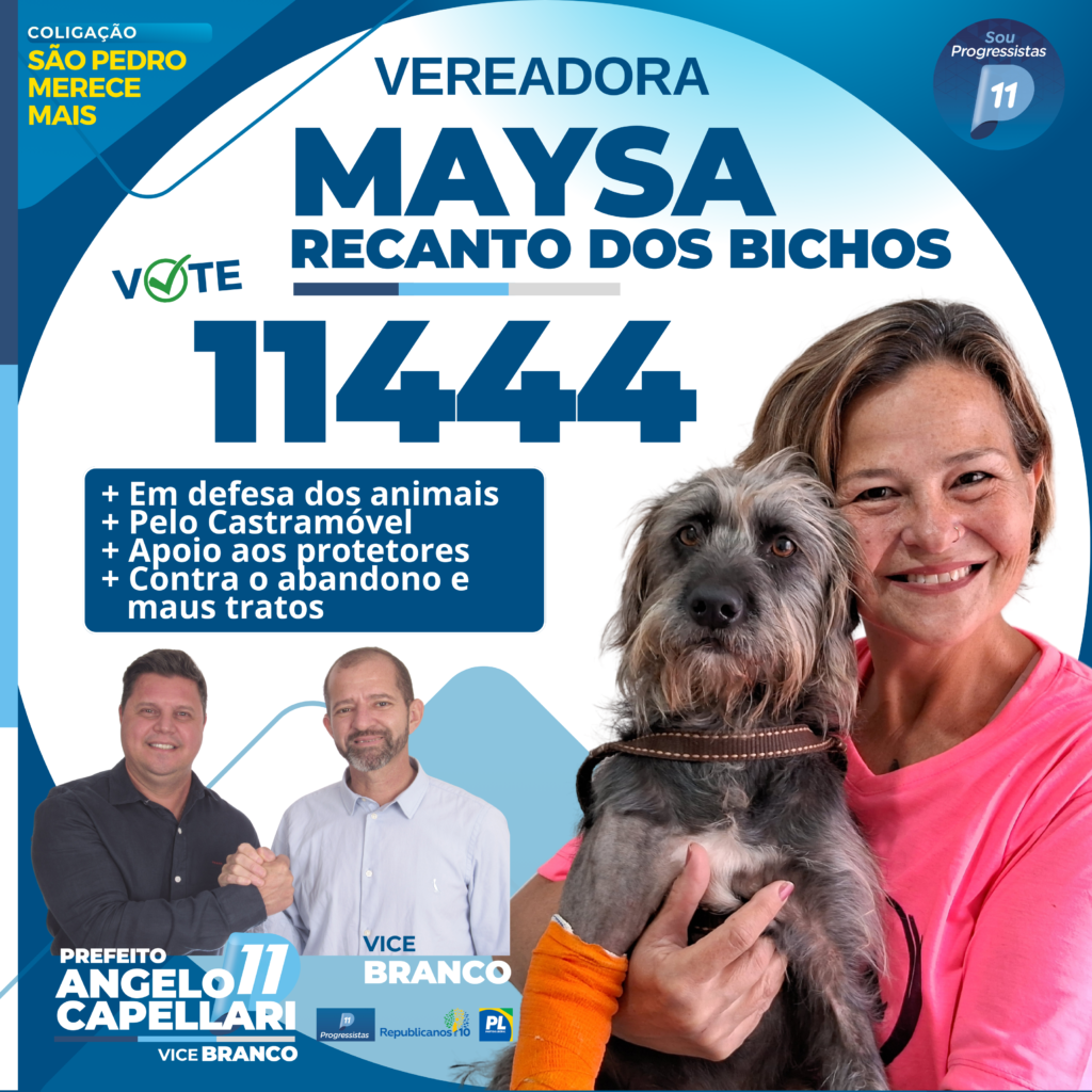 E, nesta eleição de 2024, decidi ser candidata a Vereadora para, com a força do Legislativo, propor projetos para o benefício da causa animal.